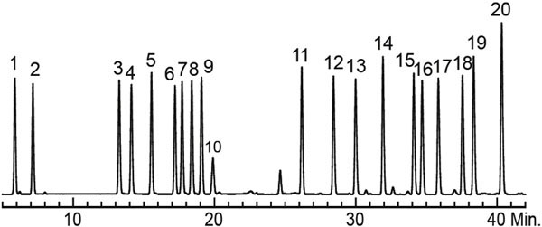 Diamonsil® AAA columns show outstanding selectivity and high resolution. Eighteen kinds of natural amino acids, an internal standard, and ammonia can be detected simultaneously using PITC and DNFB reagents.